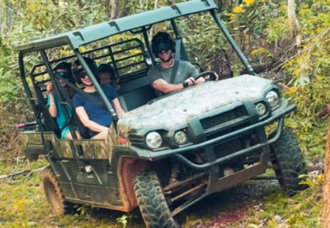 Drive one of our Kawasaki UTVs! Immerse or engage yourself in a technical, off-road driving experience. You’ll weave around trees, ascend and descend gnarly hills, cross logs, roots, and other obstacles, and experience diverse vegetation, wildlife, and amazing views of the Hickory Nut Gorge as you take in this peaceful Lake Lure property.