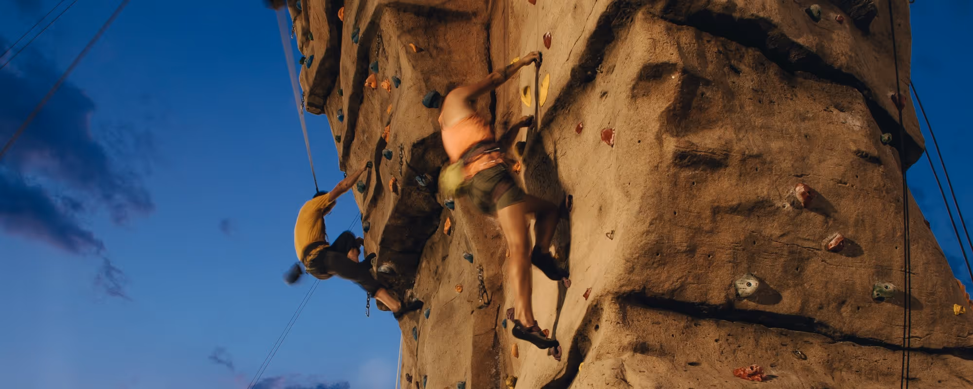 Bouldering, top-rope and sport climbing are available on one of the largest outdoor climbing complexes on the East Coast. The Whitewater Center is home to one of the largest outdoor climbing facilities in the region. The facility includes 35-45 top-rope routes, nearly 50 bouldering problems, and a 46-foot tall spire for sport and top rope climbing.